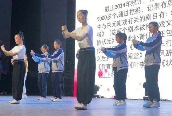 高甲戏是国家首批非物质文化遗产保护剧种,是福建省五大剧种之一。2020年9月,安溪第十八小学成立高甲戏社团,并被确认为“安溪县戏剧团林水德劳模工作室”和“安溪县高甲戏艺术保护传承中心高甲戏传承基地”,由安溪县高甲戏团专业老师陈琼茹担任辅导老师,向学生传授高甲表演技艺和文化知识。高甲戏社团活动的开展,不仅丰富了孩子们的校园生活,让孩子们在潜移默化中感受到传统文化的熏陶,而且培养了他们对传统文化的热爱之情,有力地推动传统戏曲的传承与发展。