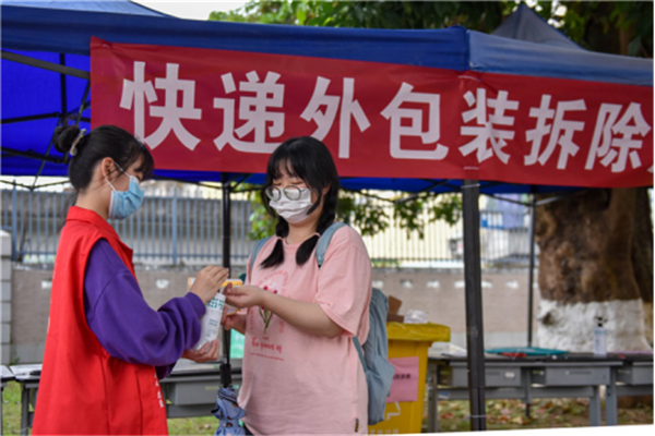 “不用将快递拿到宿舍拆除,在拆除点拆除后消毒,很方便,心里也更踏实。”刚刚取完快递的学生邹素萍说。