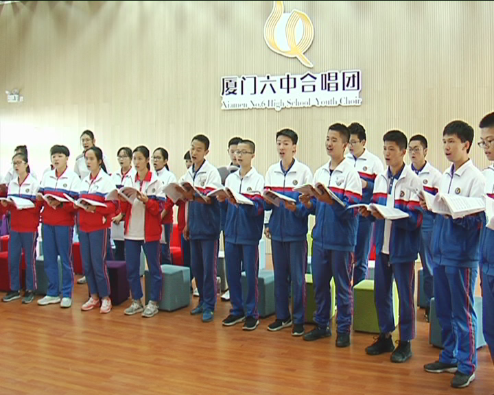 李康康(前排左五)参加校合唱团排练