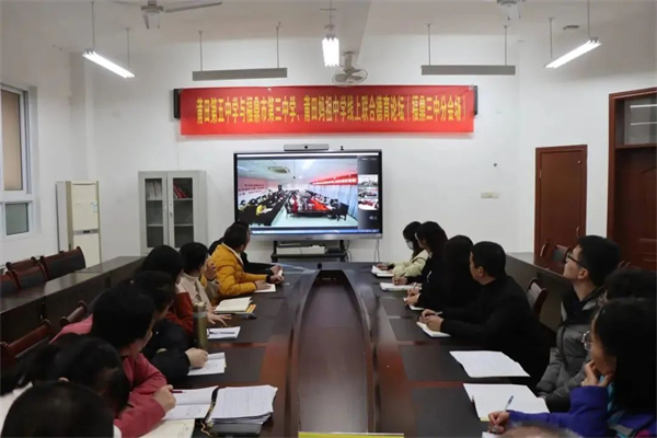 双方围绕《“四新”背景下教育教学管理的实践与思考》《立德树人背景下“生本德育”的探索与实践》等专题开展了交流研讨。双方约定,充分利用现代信息技术,共建共享教研云平台,充分利用网络优势,共同建设校级教学资源库和校本作业库,利用云端技术,实现教学公开周观摩示范课的共备共听共评工作。