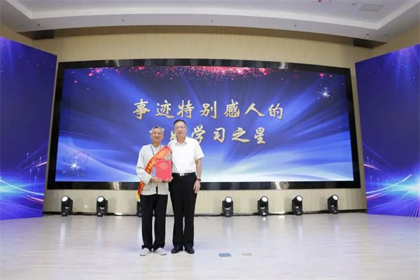 省政协教科卫体委员会副主任刘健为全国“事迹特别感人的百姓学习之星”张书岩颁奖