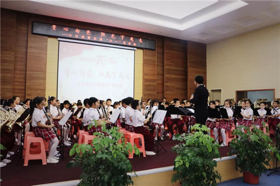 据悉,2018年9月管乐团在学校支部的指导下成立。此次表演,在师生的共同努力下,奉献了一台精彩的艺术大餐。音乐会主场在学校大会议室,各班学生在教室收看现场直播。本次演出形式多样,齐奏、合奏、独奏交替进行。演出中,小乐手们展示了萨克斯、中音号、长号、小号、圆号、单簧管、长笛等铜管乐器的独特魅力。《当我们迈步向前》、《恰恰舞曲》、《奇妙生物》、《斯特拉特福》、《小幸运》等一首首曲子,充分展现了学生对幸福生活的赞美,对艺术的热爱与向往,赢得了学生和家长们阵阵掌声。
