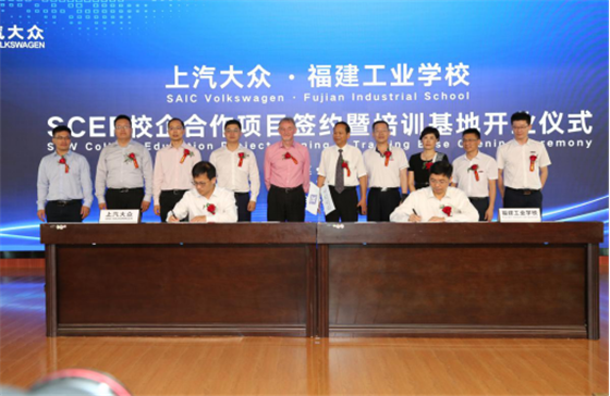 6月20日上午,上汽大众与福建工业学校SCEP项目签约暨培训基地开业仪式举行,意味着上汽大众汽车SCEP正式入驻福建工业学校。来自福建省职业教育中心主任杨运齐,上汽大众VW品牌技术高级总监MR.Patrick Okeeffe等上汽大众领导,全国各地兄弟院校代表,上汽大众汽车VW品牌经销商领导以及经销商代表,福建工业学校党委书记、校长林俊标和全校师生代表200余人出席仪式。
