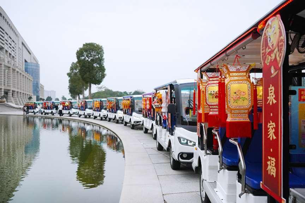 2月12日,泉州信息工程学院部分学子陆续从全国各地返校。当天下午,学校将校车挂上一盏盏泉州花灯,行驶在校园里,充满浓浓的“年味”和“福味”。