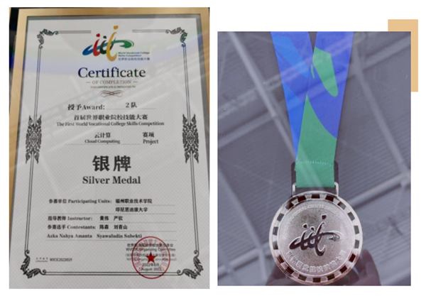 8月20日,首届世界职业院校技能大赛闭幕式在天津举行。大赛共产生15金15银15铜,福州职业技术学院代表队(信息工程系学生陈森、刘青山,指导教师黄伟))与来自印尼STEKOM大学的代表队携手组队参赛,从千名中外选手中脱颖而出,为福建省争得一枚银牌并获得奖金30万元。