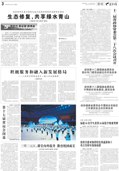 日前,福建日报03版要闻刊发《三明三元区:课堂内外提升教育组团成长》,介绍三明三元区推行“双雁阵,双航线”教育改革,构建总校联合组团雁阵,提升校际均衡发展水平的经验做法。