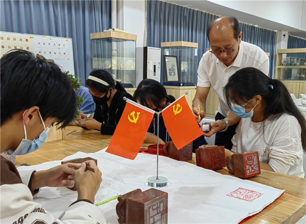 湄洲湾职业技术学院工艺美术系雕刻大师许元潘带徒现场