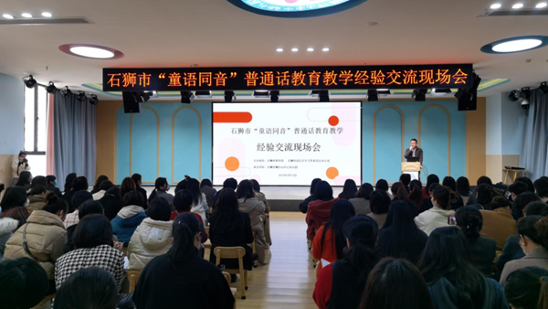 2月17日上午,石狮市“童语同音”普通话教育教学经验交流现场会在狮仔山中心幼儿园举行。全市各幼儿园园长及市语言文字工作督查评估专家组成员共163人参加会议。