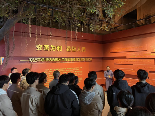 在木兰溪治理展示馆,福建电力职业技术学院团员青年师生们通过丰富的图片、文字和实物展示,了解木兰溪在过去20多年里全流域综合治理所取得的巨大成就。在现场教学环节,福建电力职业技术学院思政教师汪远萍结合木兰溪治理的成功案例,以“新时代为什么突出强调生态文明建设”为主题为团员青年们讲解了生态文明建设的重要性以及我国在这方面的政策和措施。