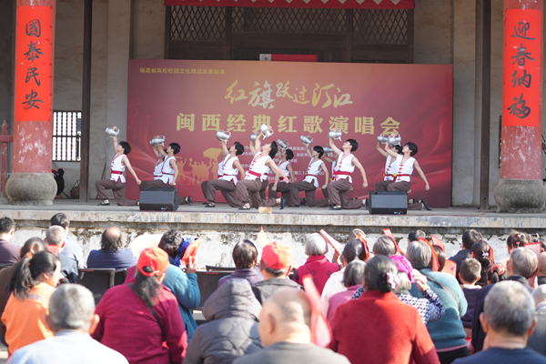 1月16日,由龙岩学院音乐学专业师生编创的福建省高校原创文化精品建设项目——《红旗跃过汀江—闽西经典红歌演唱会》在连城县新泉整训馆展演。本次活动由龙岩学院与连城县新泉镇党委、政府联合主办。