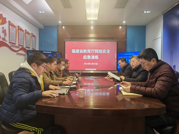 福建省教育管理信息中心担任本次演练网络与信息安全指挥小组。整个演练过程分工明确、有条不紊,达到了预期效果。通过演练,不仅加强网络安全保障人员对应急流程的理解,同时检验网络安全防护设施及安全管理工作的有效性,为应急人员及相关的管理人员提供应急响应的后期学习和培训素材。